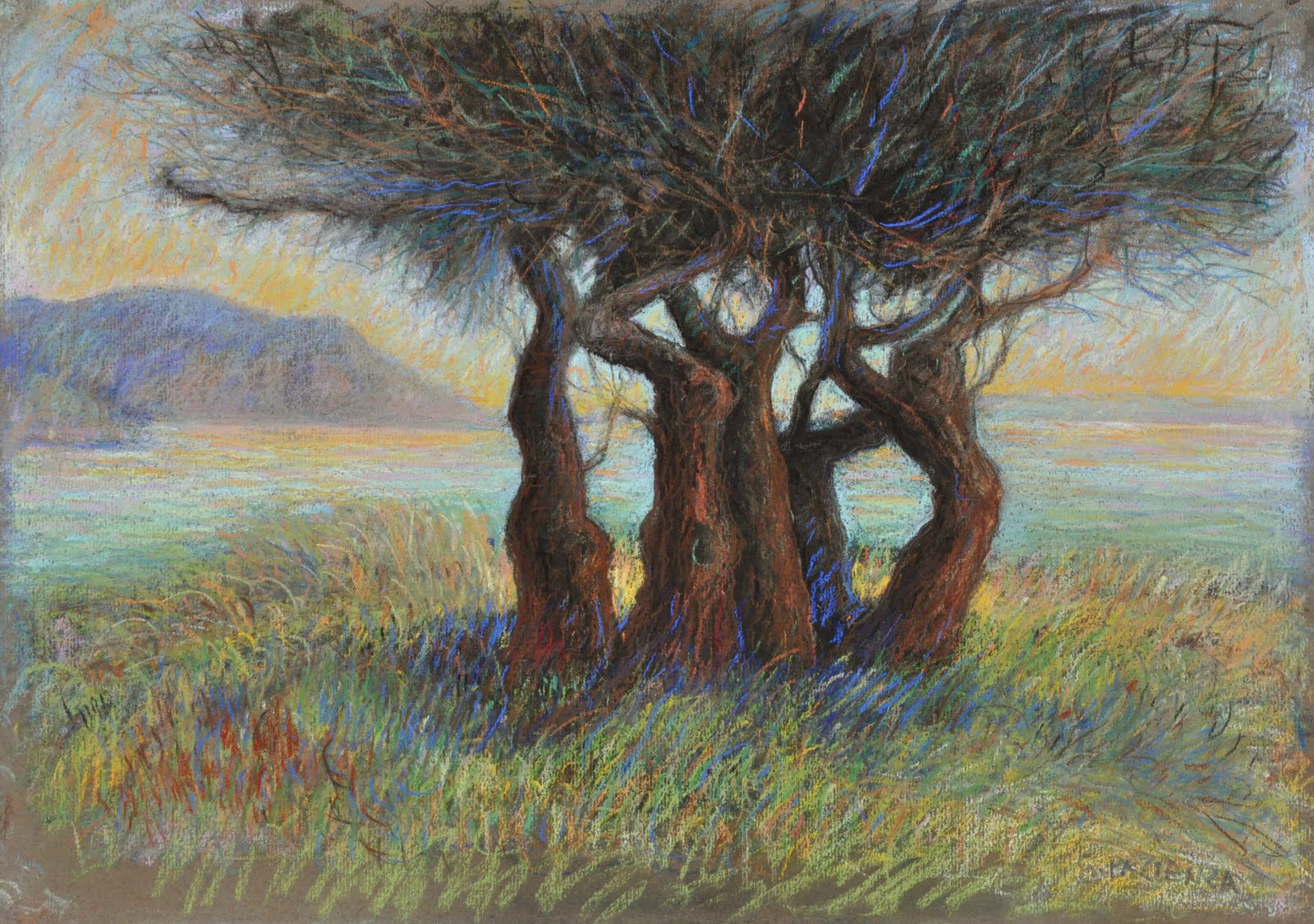 Perché non spostarsi, una volta tanto, dalla parte dell’osservatore e chiedersi quale sia il segreto motivo perché ogni opera di Dot riesce così tanto a coinvolgere ed affascinare? Ormai è assodato che tale emozione non ha più solo riferimento nell’armonia del bello, nella accattivante combinazione dei colori, nella fantastica non dimensionalità del rappresentato e, neanche, nella affascinante ambiguità di una realtà impossibile per quel costante inganno percettivo e gestaltico che l’artista governa a suo piacimento. La più recente produzione di Fulvio Dot supera tutto questo, come se il procedimento logico che aveva guidato l’artista nel suo lungo percorso, si stesse allontanando dopo aver profondamente calcato di sé l’anima creativa. La sperimentazione di materiali, la ricerca di strutturazioni in ogni singola opera con costante entusiasmo e volontà innovativa sono stati momenti costruttivi sviluppatisi in maniere diverse nel tempo: un processo di crescente complessità che è diventato ricerca stessa del limite. Si veda, ad esempio, il periodo attuale caratterizzato dal riuscito tentativo di dare matericità alla carta e fare di questo supporto un alter complementare alla tela, se non passaggio propedeutico alla stessa. Ma, ormai, Dot ha talmente interiorizzato i suoi soggetti, le varianti descrittive, le funzioni cromatiche e semiotiche di quanto forma una sua opera, da potersi portare verso linguaggi innovativi molto raffinati e quasi violentemente descrittivi di uno stato d’animo collettivo che si riconosce nell’oppressione nera del catrame, nel rosso colante, nelle bronzee concrezioni terrestri di un pianeta sconvolto, dilacerato, svuotato dalla poesia retorica della realtà, rimesso alla sua totale selvaggia natura. Dot vola, e forse questo è quanto affascina l’osservatore: l’essere rapito in una sorta di biga alata platoniana per contemplare ragione ed irrazionalità, uscendo dal contatto con l’immanenza, assaporando la trascendenza. Così le forte tensioni che soggetto e colori trasferiscono alla vista, poi, si stemperano. È come si fosse data a Dot una delega, richiedendogli di farci da auriga per condurci alle rarefatte arie di una arte che sempre più si connota come linguaggio universale descrittivo delle nostre inquietudini contemporanee e del superamento dell’accettazione incondizionata della realtà o, perlomeno, di una sua interpretazione limitata alla sola ottica umana. Il codice iconico di Fulvio Dot è rappresentazione delle non certezze del nostro tempo, delle dissoluzioni dei riferimenti, di una inquietante carenza di sicurezze ed ipotesi garantite per il futuro che non solo il corso degli eventi, ma gli estremi stessi di una scienza costantemente diveniente ci consegnano
