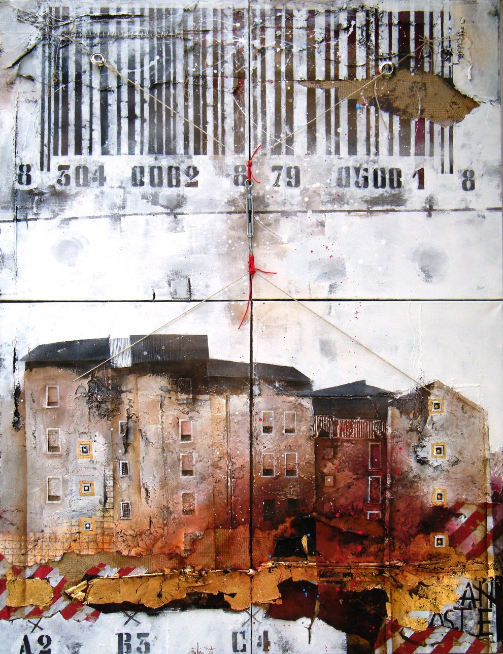 Reloaded è l’ultimo approdo di una ricerca artistica in perenne divenire. Le principali protagoniste sono ancora quelle vedute di Venezia che ne hanno caratterizzato la produzione passata, ma che ora ritornano – rivisitate – alla ribalta come filo conduttore di una duplice sperimentazione. Da una parte c’è il supporto: non più una semplice tela, ma una sovrapposizione di tele, catramate fino a renderle rigide, strappate e, a volte, ricucite. Oppure teli militari, con ganci e fibbie che escono dal quadro per dotarlo di inedite tridimensionalità. Dall’altra parte, il soggetto: una città in bilico tra ieri e domani; tra i simboli di una quotidianità contemporanea e le vesti immutevoli di un passato glorioso. Le vedute del Canal Grande e di altri luoghi emblematici di Venezia appaiono, di fatto, reinterpretate alla luce dell’esperienza e della cifra stilistica di Dot. L’alfabeto della nostra cosiddetta “era 2.0”, fatto di social network, cancelletti e codici a barre, le solca nei giochi di decorazione materica a cui l’artista ci ha ormai abituati. Il pittore monfalconese gioca con i riflessi di acque invisibili ma presenti, riuscendo nella non facile impresa di catturare l’essenza del luogo su di una sottile linea di confine tra il figurativo e l’informale. Prospettive impossibili, sovrapposizione di supporti, e dettagli decorativi sono i tasselli che – come tanti micromondi astratti in cui siamo invitati a perderci – compongono paesaggi che sappiamo riconoscere e al contempo scopriamo di nuovo.