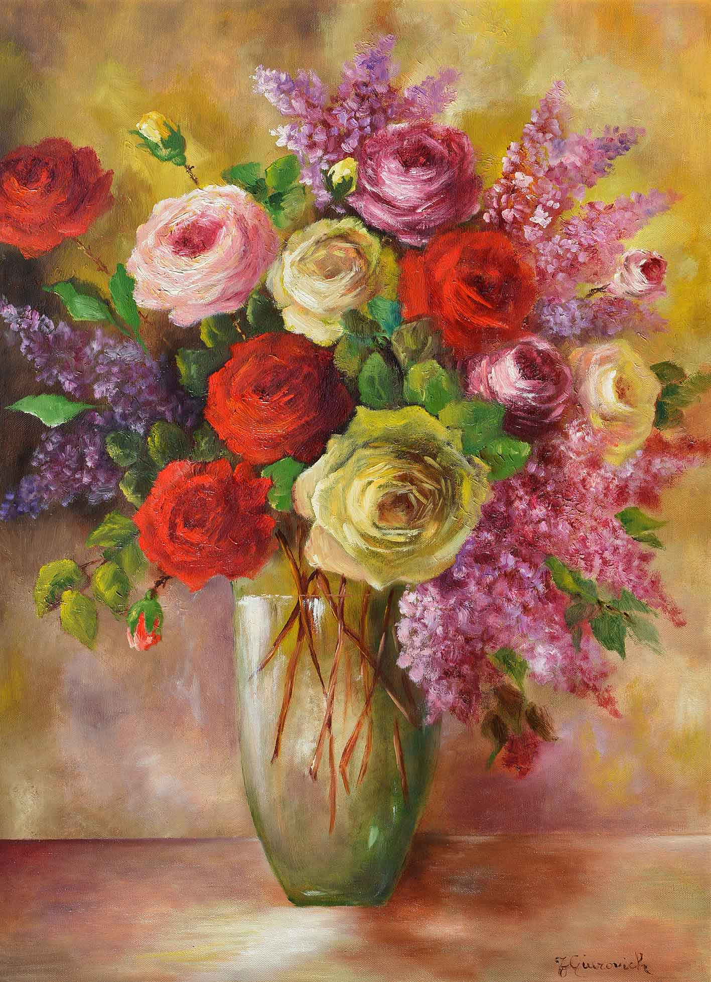 Frida Giurovich, Rose e Fiori (olio su tela 50×70 cm)