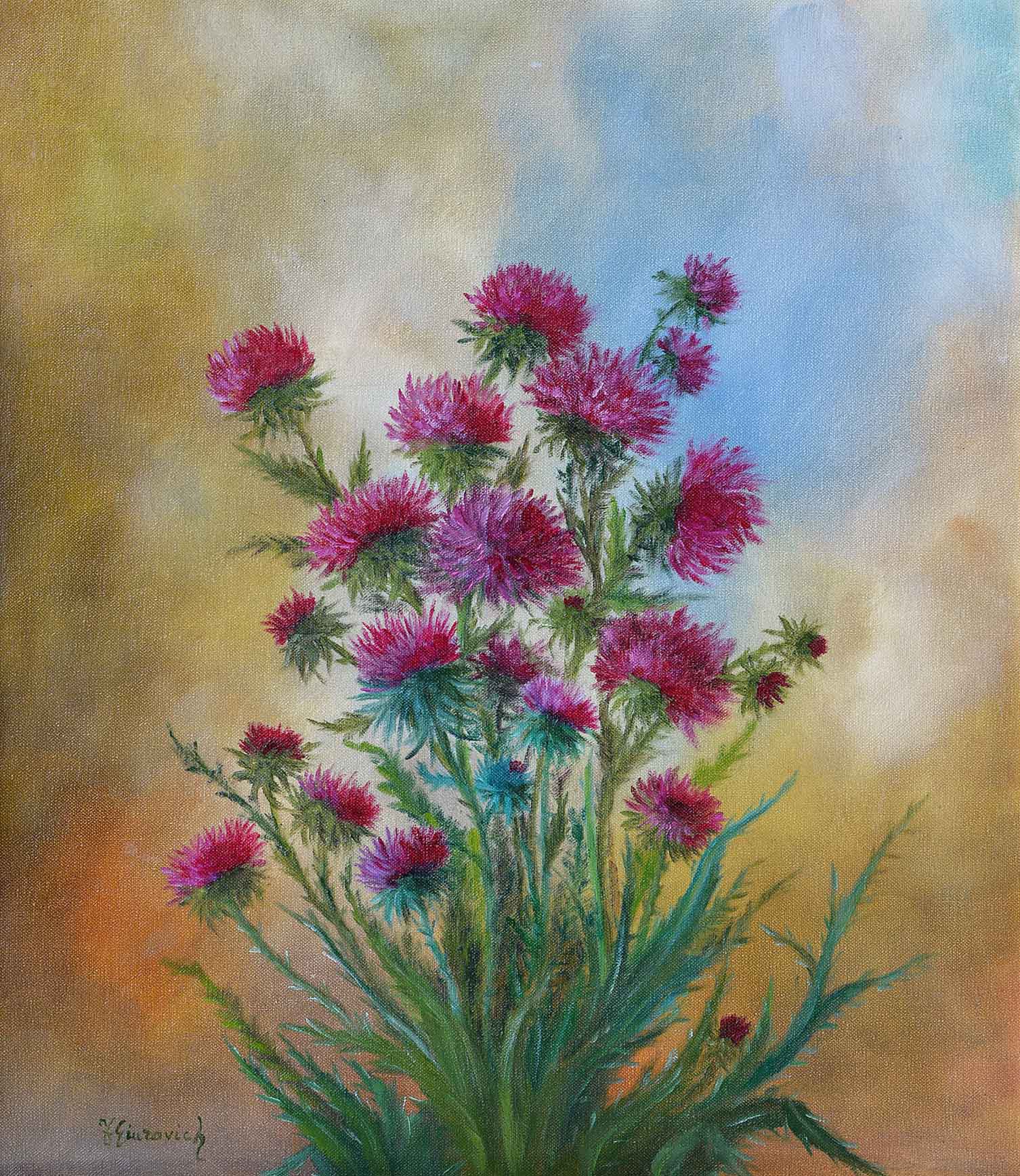 Frida Giurovich, Cardi montani (olio su tela, 40×35 cm)