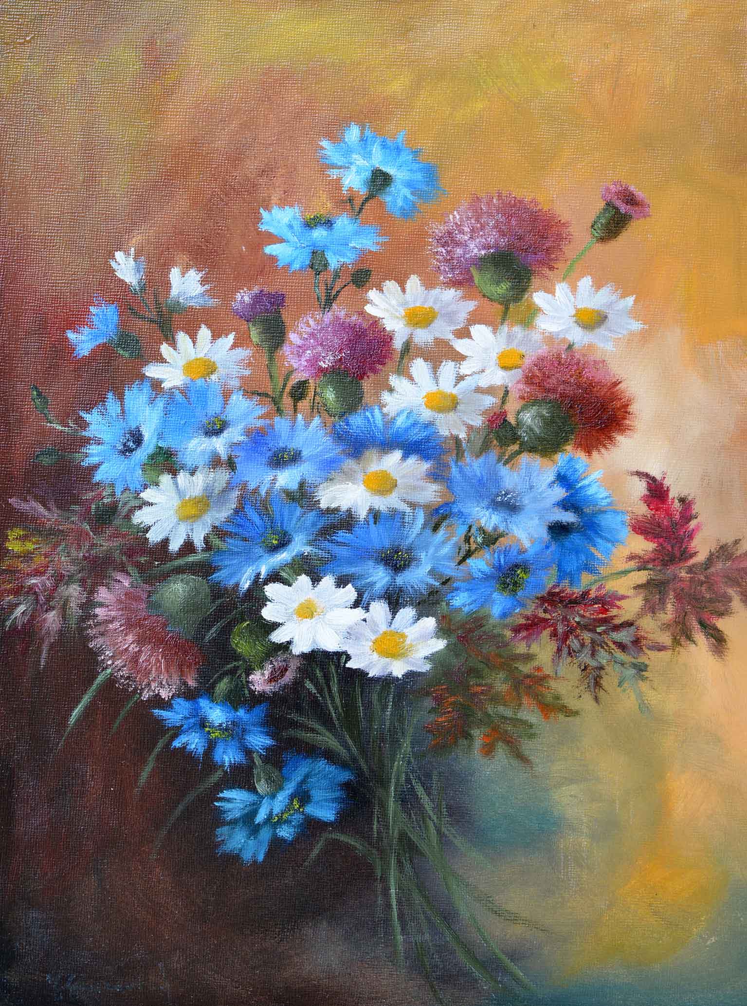 Frida Giurovich, Fiori di campo (olio du tela, 40×30 cm)