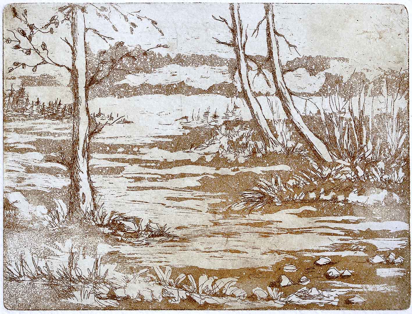 Frida Giurovich, Palude (acquaforte, acquatinta,13×18 cm)