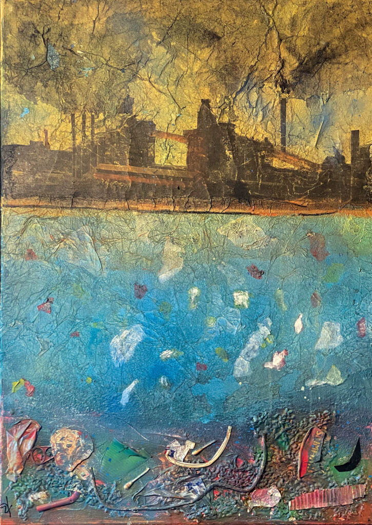 “Sono opere – scrive Franco Rosso nella presentazione – che rappresentano l’esito creativo conclusivo di una curva esperenziale che si è rivelata palestra mentale per approntare il suo repertorio visivo, ma anche impalcatura concettuale del suo lavoro. Del dadaismo Fritsch fa sua una certa dissacrazione dell’arte, ma soprattutto l’effetto di spaesamento e di slittamento dei contenuti dalla sfera estetica a quella riflessiva e comunicazionale, sempre con quella impronta ironica che configura il dadaismo come una costante dello spirito, più che un movimento un atteggiamento. Dal dadaismo prende anche l’avversione alla morale corrente e dominante, la protesta poetica ed etica contro la guerra, l’uso dell’allusione ironica, la demistificazione della preziosità materica dell’opera d’arte, l’equivalenza tra immagine dipinta e oggetto e quindi l’uso del collage. Tutte cose che troviamo nelle opere esposte in questa Mostra, realizzate su tela, carta, polistirolo ed altro, tutte corredate da titoli in qualche modo indicativi. Ad ispirarlo i libri di Haruki Murakami o di Svevo, gli scenari di guerra oggi in essere, gli enigmi psicologici della contemporaneità, il caos che aggredisce la società, poi lui unisce storia, utopia e realtà con un approccio alla fine giocoso, quasi volesse con ironia visualizzare l’ideologia liquida protagonista del nostro tempo. Lo fa agendo “artisticamente” creando immagini nelle quali la bellezza si sottrae alla mistificazione della cosmesi, tipica del virtuosismo esecutivo: sempre con il suo mordente inventivo attraverso il quale Carlo Fritsch ci introduce in una sfera del reale, considerando la realtà non come statica oggettivazione, ma come intreccio, viaggio convergente di azioni e accadimenti”.