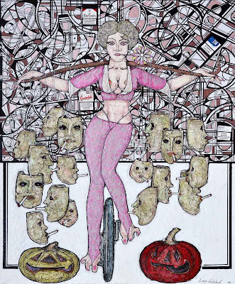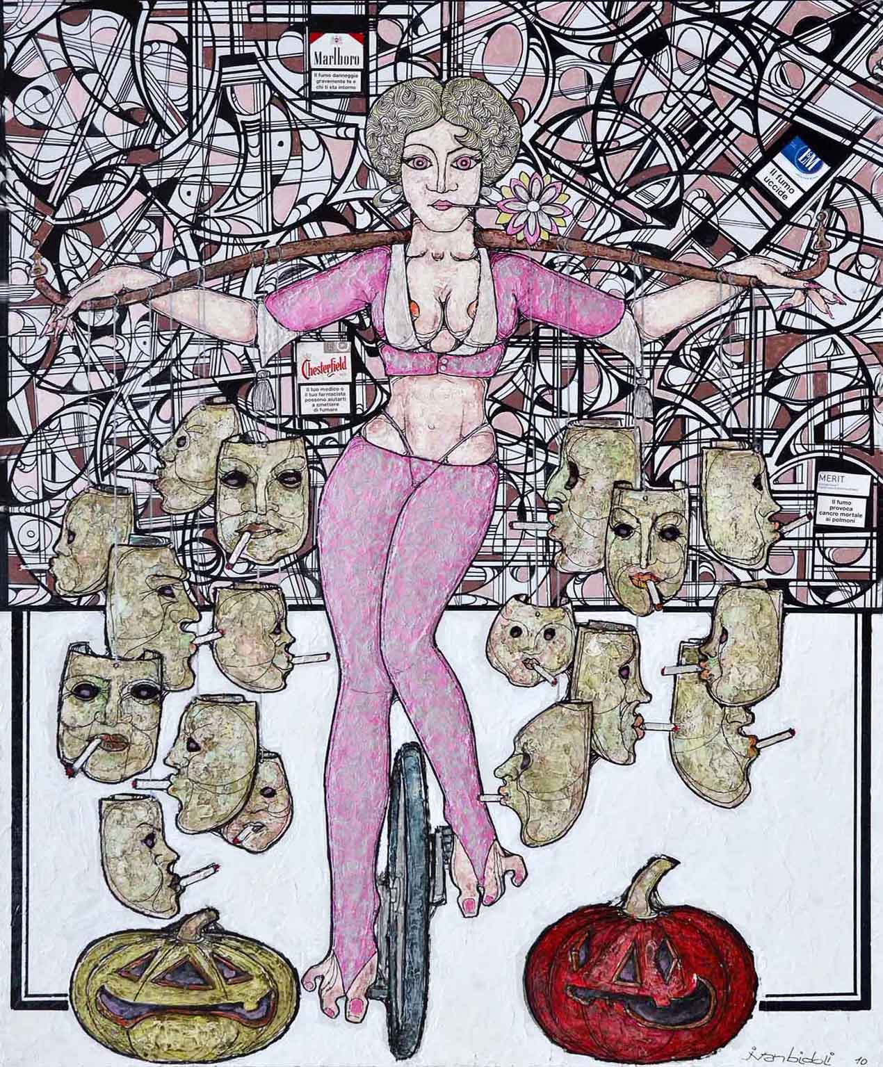 È stato l’unico allievo di Max Fabiani, uno dei più importanti e significativi architetti e urbanisti del “finis Austriae”, e lo si vede. Pittore di razza, Ivan Bidoli, 78 anni a dicembre, presenta in questa mostra un’ampia sequenza di opere tutte inedite, che raccontano con taglio surreale, simbolico e spesso giocoso, l’epopea quotidiana degli umili, ma anche tematiche dal più ampio respiro come per esempio la lotta alle dipendenze, l’importanza e le sfumature del sentimento, il gioco rischioso dell’amore con le sue schermaglie e alcune sapide considerazioni sul rapporto uomo-donna.
