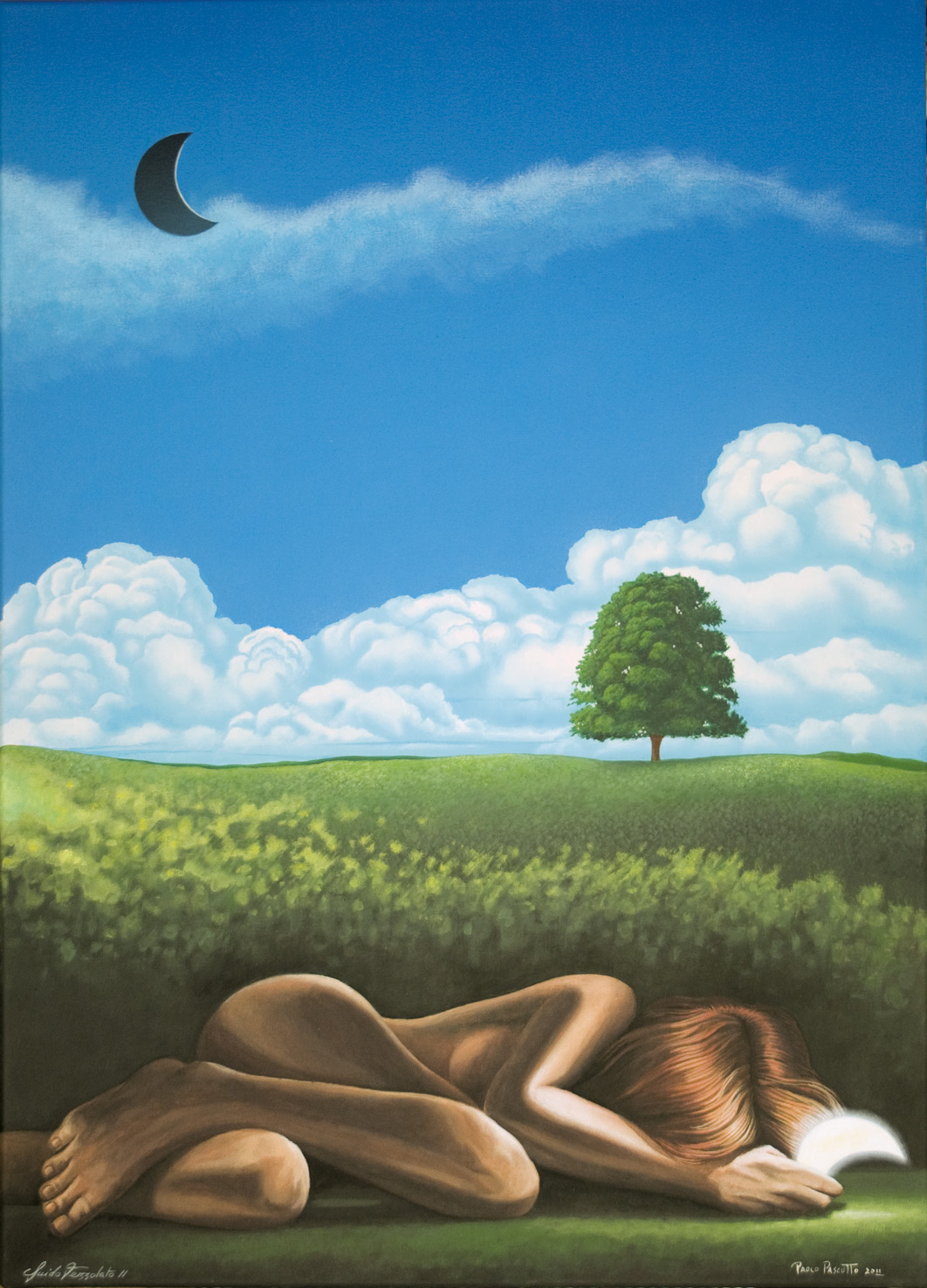 Ho perso l’equilibrio, ho perso la prospettiva, ho perso il senso, ho perso i miei sogni, ho perso il riferimento, ho perso quello che avevo appena trovato… Quello che accomuna i quadri di questa mostra è qualcosa che non c’è più. Una mancanza. Un’assenza. Una sparizione. Una perdita. Ma siamo sicuri che sia un caso? Secondo me c’è una precisa volontà dei soggetti protagonisti delle tele. Sono loro i padroni della situazione. E vanno avanti! Il bambino ha perso l’astronave per un soffio. Ma in fondo non si preoccupa più di tanto: con tutte le bizzarrie che si vedono in giro, cosa sarà mai un disco volante? E quell’astronauta? Ha perso la terra, ma ha trovato casa. E l’anziano signore: è lui che ha fatto volare via l’uccellino! E ora cerca la nostra complicità più che la nostra pietà. E la ragazza: è lei che ha tagliato il filo del telefono. Ha troncato lei la storia. E quell’altra ragazza? Dove va il suo angelo? O forse era un diavolo? E la signora con la valigia? È lei che ha deciso di perdere la nave. Ci ha messo un po’ di più a vestirsi ed eccolo là, il bastimento se n’è andato. Smarrimenti e solitudini, solitudini fiere e consapevoli: “Sono la sola ad avere avuto il coraggio di dire di no.” “Sono la sola che legge il libro. E che vuole continuare a farlo!” Perfino la nave parla: “Sono la sola a solcare questo cielo.” Perfino una potenziale tragedia cambia il suo corso: “Sto cadendo, ma sto volando”… Qualcosa non c’è più, ma il segno dei due artisti c’è tutto. Il segno di Pascutto è sempre più disinvolto e maturo e non trascura i suoi classici spericolati punti di vista sui paesaggi. Sembrano disegnati su tele di nuvola le opere di Pezzolato, dalla cupezza dannatamente luminosa. I colori, quelli no, non sono smarriti! Si ritrovano saldamente nel blu cielo, ormai la cifra di Paolo Pascutto, e nei toni più autunnali, materici, vissuti di Guido Pezzolato. Sicuramente mi sarò perso qualcosa… ma questa è un’introduzione libera e, come da contratto, inevitabilmente carente. Contano i quadri, non le parole. Ancora poche battute e il testo è scritto, la presentazione è finita. Ma questo, questo mi preme dirlo: nei quadri di Pascutto e Pezzolato, in fondo, niente è perduto. C’è un filo di speranza. Sempre. Come a dire: “Siamo padroni del nostro destino. E ce la faremo.” A questo punto, resta solo una domanda: “Ma i soggetti smarriti sono quelli dei quadri o siamo noi?”
